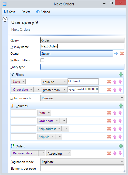 User queries can be owned by a user or a role, so each user can create their own queries and, if useful, make them public to other users.